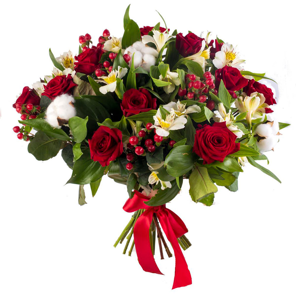 | Состав | Альстромерии, Розы, Хлопок |
