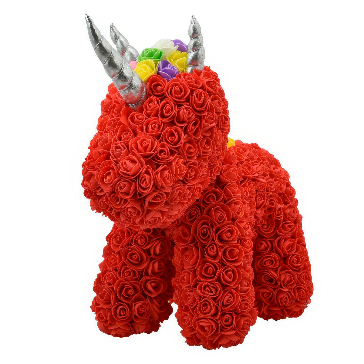 Единорог из роз красный — созданный из более чем 550 великолепных 3D розочек.